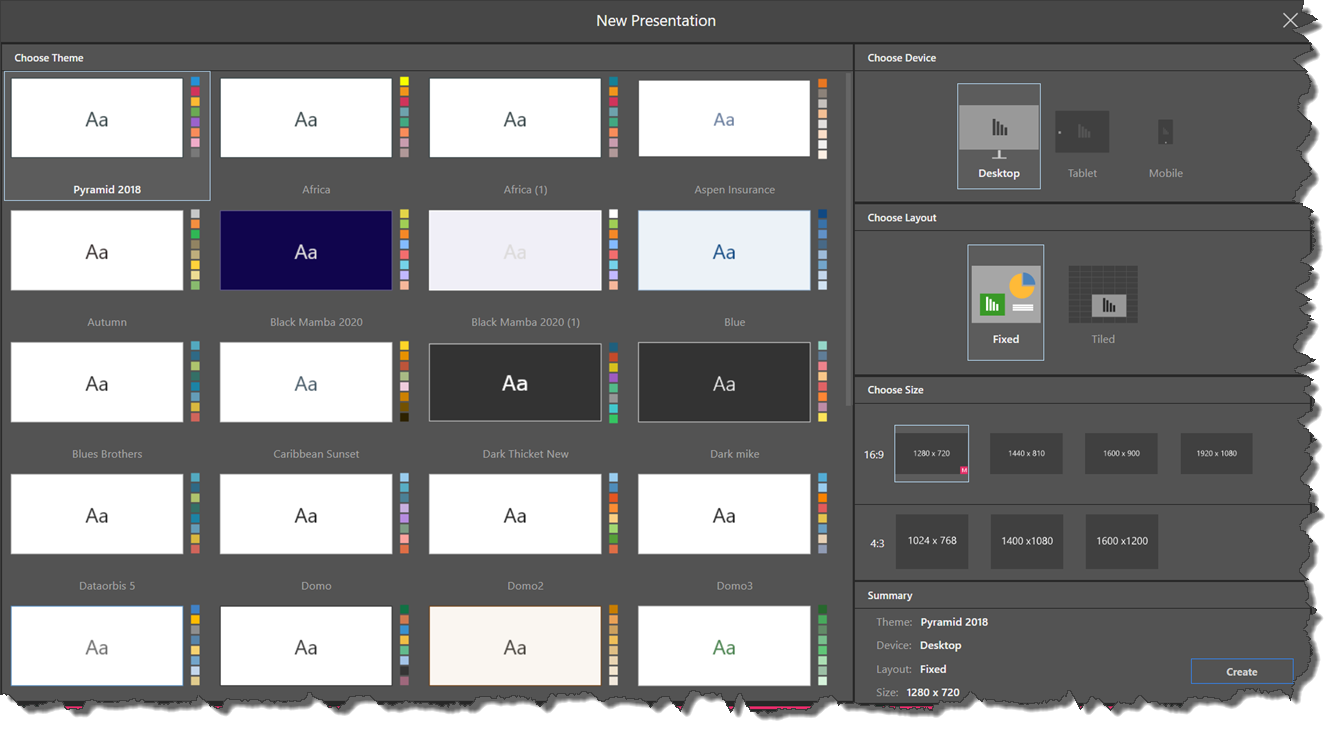 Choose this option to build a presentation specifically for mobile viewing, enabling miniature visuals, text, buttons, and dynamic assets (dynamic images, dynamic text, dynamic URLs, and dynamic jump buttons).