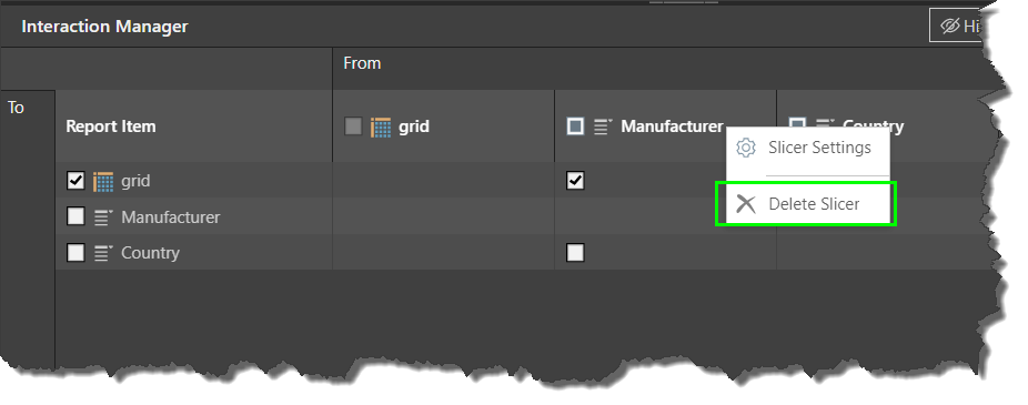 Right click on the relevant slicer from the Interaction Manager and click Delete Slicer: