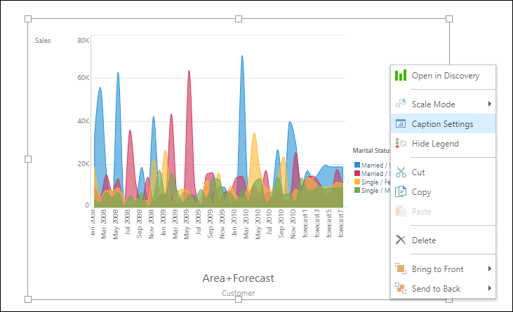 Show Captions: show or hide captions for the given content item. When captions are disabled, the content item's hierarchies, measures, and breadcrumbs will be displayed in the top left corner of the visual (red highlight below).