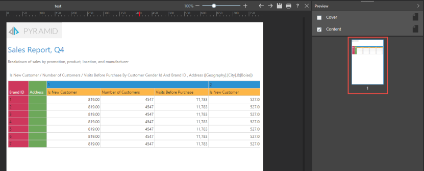 Select the Content template option from the Preview panel. Add any logos, images, background colors, or textboxes as required.