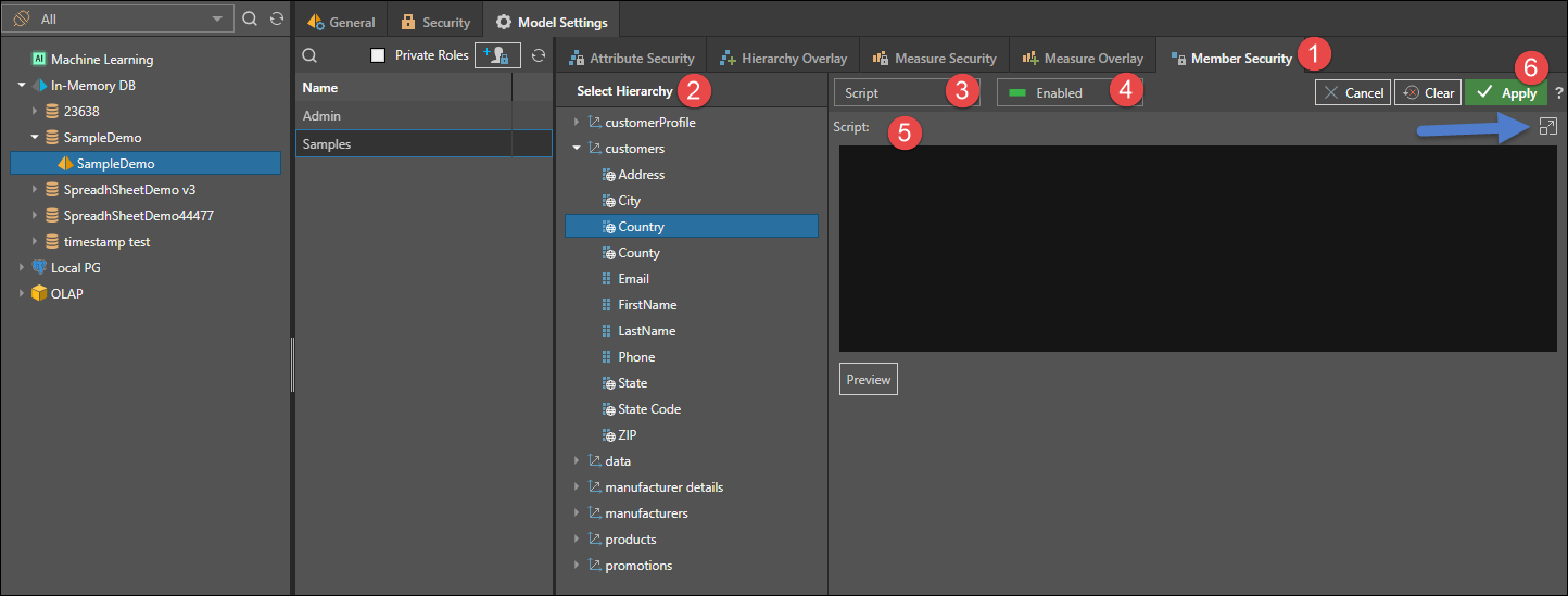 Note: while basic member security is available for all supported data models, dynamic member security is not supported for MS OLAP, Tabular, SAP BW and SAP Hana models and cubes.