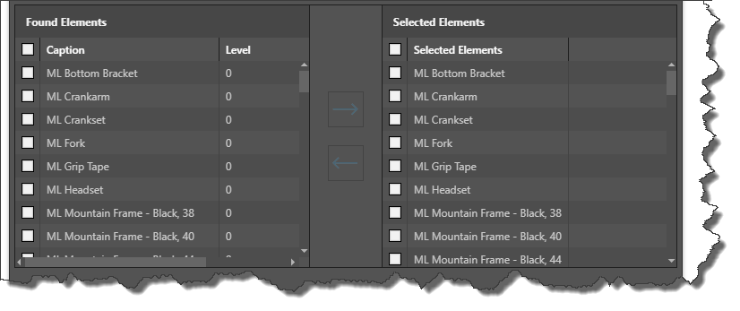 Select all the results in the list of Found Elements, and using the blue arrow, move them to the Selected Elements panel.
