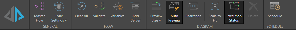 - Execution Status: enable Execution Status to show the status of each node in the data flow.