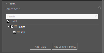 The file will appear as a single table in the Tables window; select the table and click the 'Add Table' button.