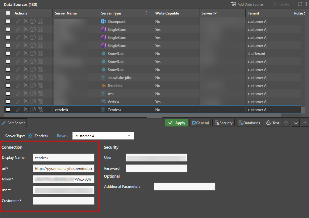 Connection string templates that are wrapped in braces { } can be edited per data source from the Data Source listing.