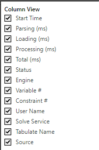 Solve Transaction logging provides a list of all of the occasions on which Solve algorithms have been run in the application, within a given time period. You might want to investigate your Solve logs if you are investigating the performance of your system, perhaps your methods are taking too long to run and could be reconfigured, or perhaps they are run too frequently and you could improve performance by changing their Auto Run settings.