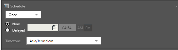 Schedule your publication to run once only, either immediately, or at a specified time and date.