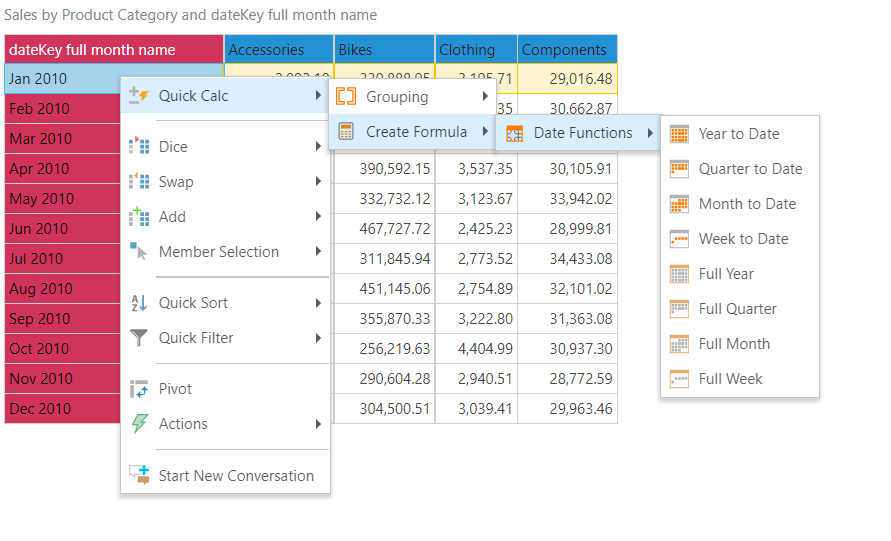 In Discover Lite, there are two main quick calculation types: Grouping, and Formulas.