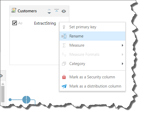 The new table is added to the table schema; to rename the column(s) in the custom table, right click on the relevant column and select Rename from the context menu.
