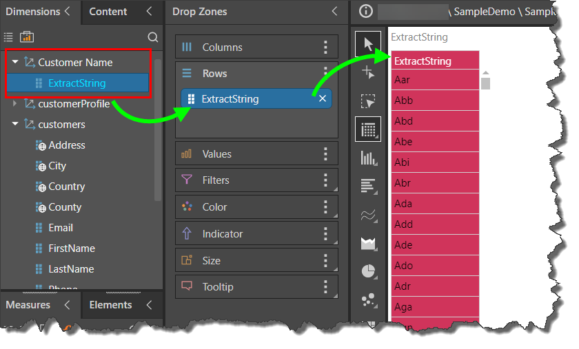 In this example, the Substring function is used to create a new table by extracting substrings from the firstName column in the Customers table.