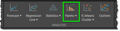 To use the Pareto functions, simply click the Pareto button from the Query ribbon.