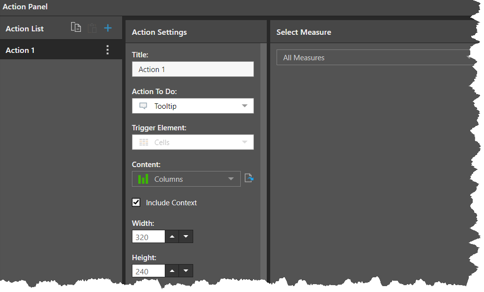 Set the trigger element from the query, which when clicked will trigger the action. This may be a report, hierarchy, measure, member, or cells. The action will be available only for the selected trigger.