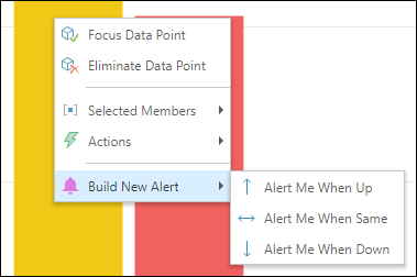 - From the context menu, open the Build New Alert sub-menu and choose the required alert type: get an alert when the value of the given data point is up, the same, or down. Once inside the alert dialog, there are more choices for triggering a data alert.
