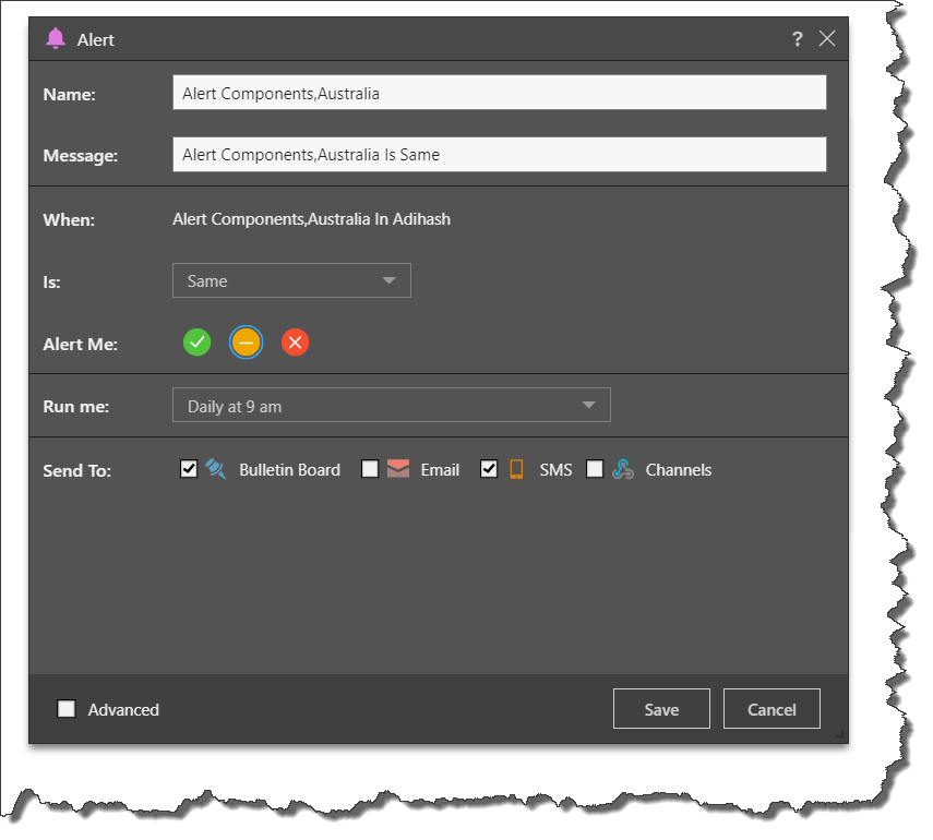 - Advanced: select this option to configure an advanced alert (not available with the Community Edition).