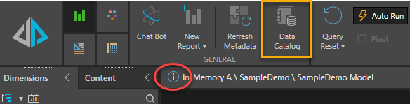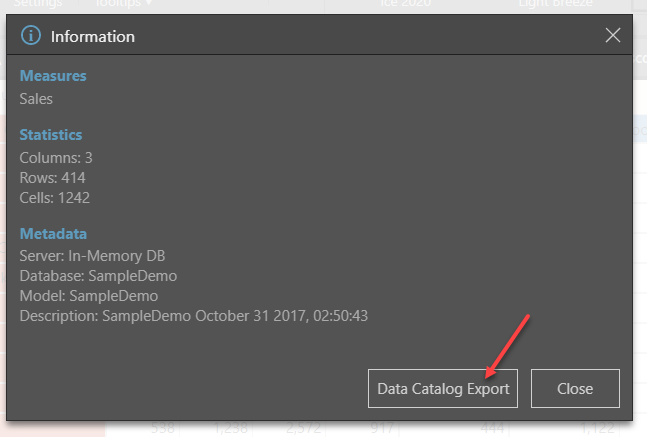 An alternative way to access the ENTIRE data catalog for a given model is to export it to a PDF document. To export the catalog, click the Data Catalog button in Discover from the Home ribbon tab.