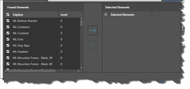 Select all the results in the list of Found Elements, and using the blue arrow, move them to the Selected Elements panel.