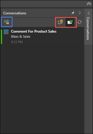 From the Conversations panel, use the icons on the right (red highlight) to filter conversations. You can filter conversations to show report specific and/ or global conversations. Click here to learn more.