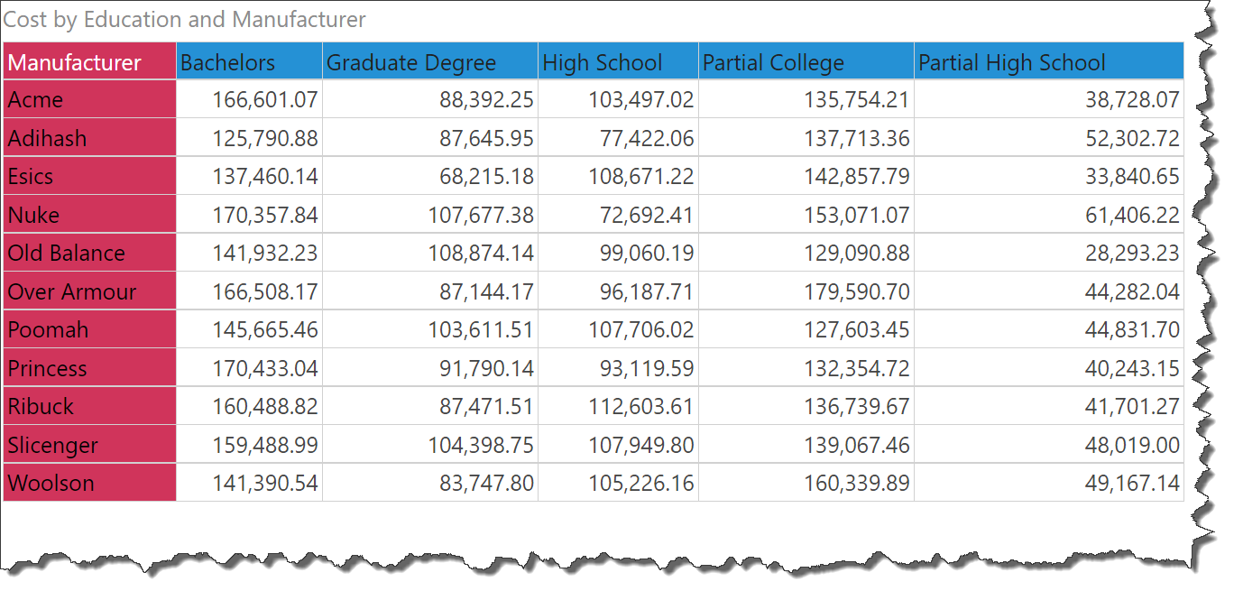 Now the query is visualized as a grid; the increased font size actually increases the grid size, because the text is located inside the visual (as opposed to outside of it, as in the chart above):