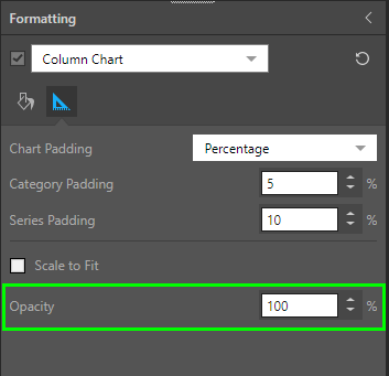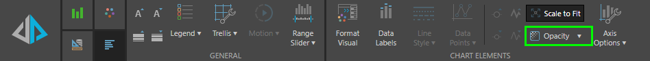 You can also change the opacity of most charts (not including gauges and maps) directly from the Component ribbon: