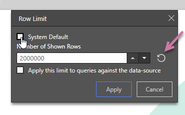 Tip: You can click Reset (purple arrow) to revert back to the default row limit.