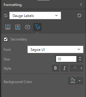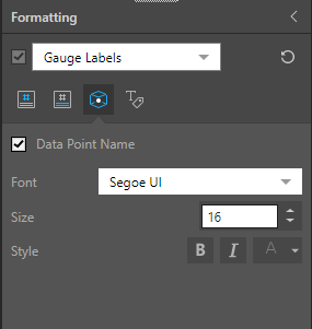 Open the Formatting panel and set the drop-down selection to Gauge Labels: