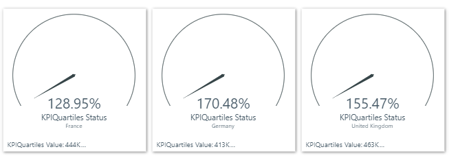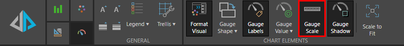 The Gauge Scale button is enabled when working with dial KPIs. If the KPI style was set as 'dial' from the KPI builder in Formulate, when the KPI is added to the query in Discover, the Gauge Scale button will be enabled from the Component ribbon (red highlight below).