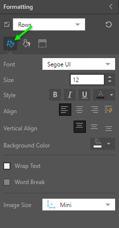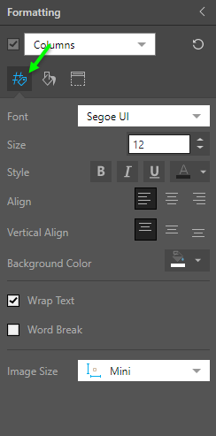 - Word Break: this option can only be selected if text wrapping is enabled. If text wrapping is enabled, but there is still not enough space to accommodate the entire value, a word break will be added.