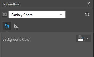 When working with Sankey charts, you can change the report background color and scale the chart down from the Formatting panel.