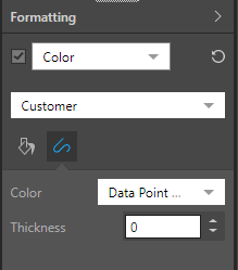 From the Color sub-category of the Formatting panel, you can edit the data series that you've selected from the 2 tabs: Fill and Line.