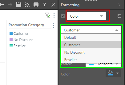 Open the Formatting panel and select Color from the drop-down menu (red highlight below).