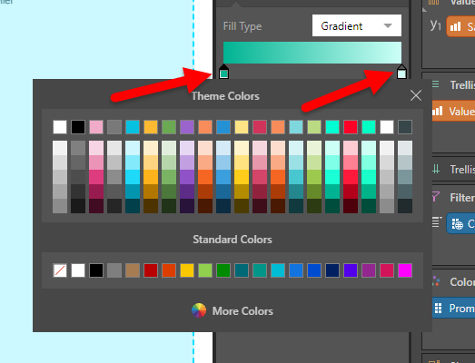 - Gradient: select a gradient; choose both the base color, and the end color, to define the range of the gradient.