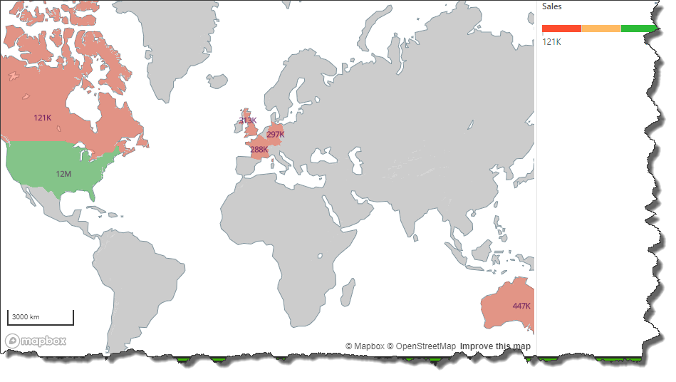 In this example, labels were enabled to show value, percentage, and category. We can see that the United States made over $11, 000,000 in sales, accounting for 89% of total sales.