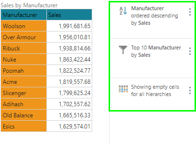 When filtering or sorting a query, or showing empties in a query, these actions will appear on the canvas as query info captions. You can show or hide these captions, without removing the functions from the query.