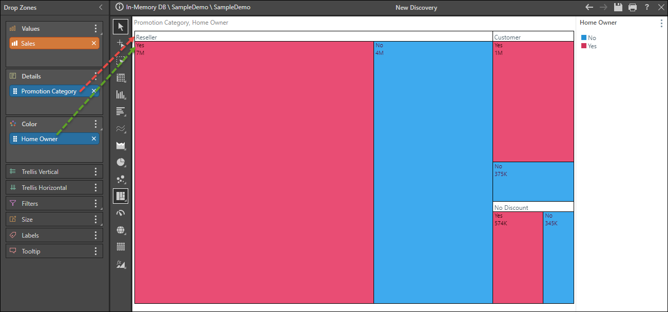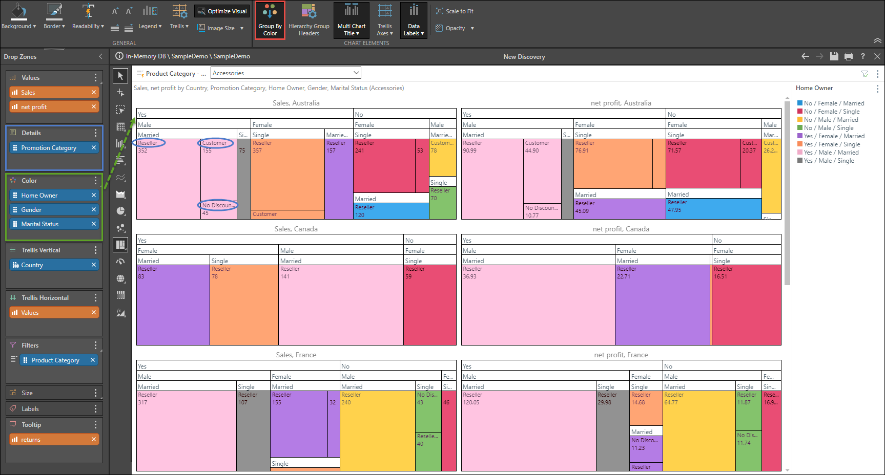 Open the Sample Demo model and add the Home Owner hierarchy to the Color zone.