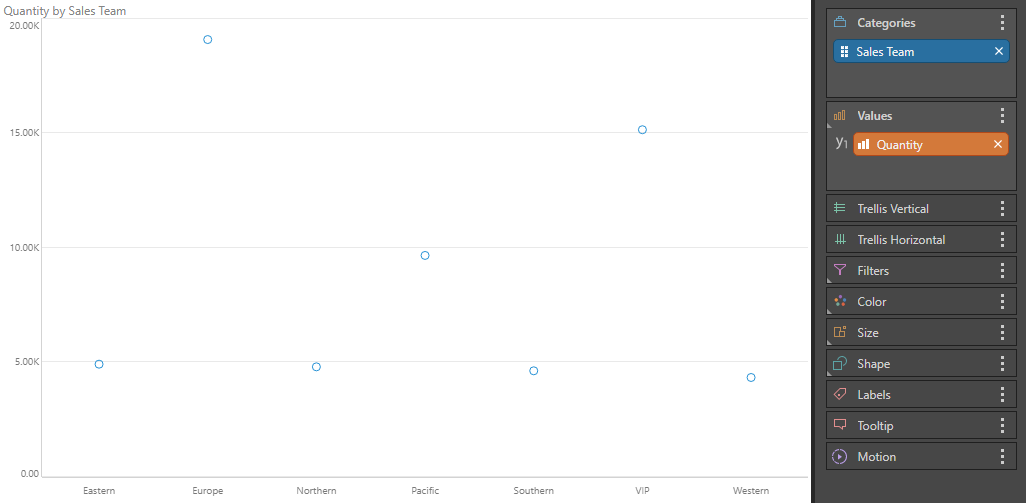 To build a Point chart, add at least 1 hierarchy to the Categories zone, and a measure to Values: