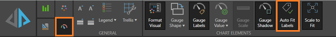 - At the bottom of the panel is an Auto Fit Labels checkbox. Select or clear this field to "auto fit" the labels to fill the space available or fix the sizes and use the font sizes determined using the Gauge Labels settings instead.