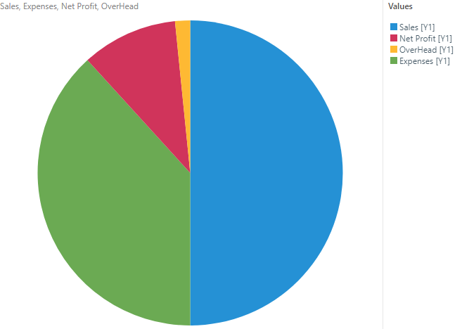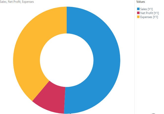 You can create multi-measure pie and doughnut charts in order to compare measures instead of elements. Multi-measure pie and doughnut charts are created by added multiple measures to the same axis in the Values drop zone. The measures are then automatically colorized, and displayed as segments of the chart.