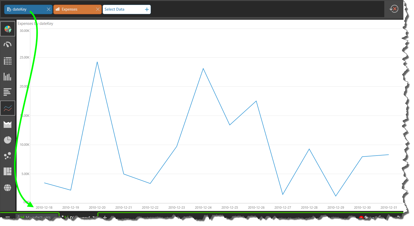 The last 14 days is then automatically added to visual. In this example, it is plotted along the y-axis of the line chart, to display a trend over time.