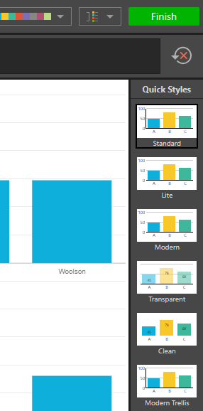 The quick style presets are displayed on the right of the screen when you click on a chart type: