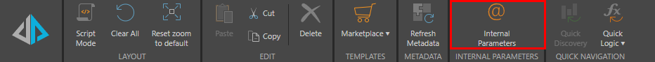 To manage quick parameters, click the Internal Parameters button from the ribbon (red highlight below):