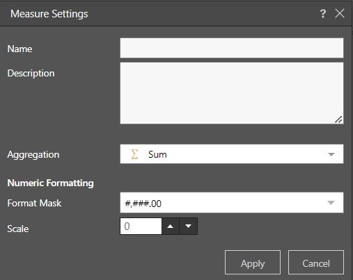 - Format Mask: how the Measure will be formatted on display.