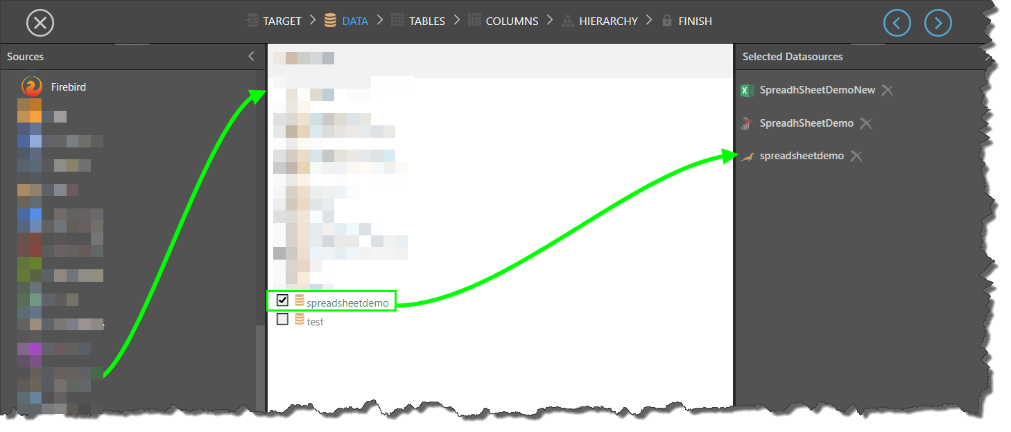 Once you've selected a datasource, it will be listed on the right in the 'Selected Datasources' panel.