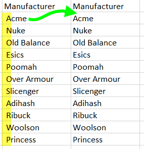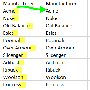 In this example, we want to remove the space character from the end of the string. The source column (on the left) contains spaces at the end of the string. After the Trim function is applied, these spaces are removed.