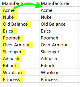 Trim Method: trim the space from the start of the string, the end of the string, or both the start and end. Only one method may be selected. Any spaces in the selected columns will be removed, as long as they match the selected trim method.