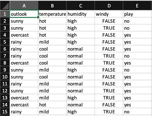 Let's return to the simple weather dataset from the naïve Bayes section: