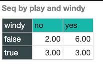When windy is false, as it is in the first example, the 6/9 evidence that contributes for play=yes versus the 2/5 evidence it contributes for play=no is enough to result in yes being the most likely class value. However, in the case of windy=true, the counts are split evenly between play=yes and play=no which, in-turn, provides more weight for no - that is, 3/5 versus 3/9. This is enough support for no to make it the most likely class value.