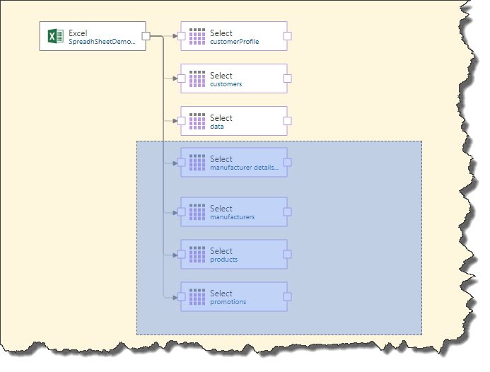 Once a node is added to the flow, you can left click on a node to select it, or left click and drag to move it. To select multiple nodes, drag select from the flow canvas, and include all nodes you want to select.
