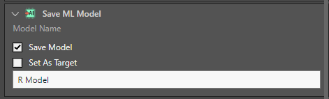 This option is only enabled if you've selected Save Model in the Save ML Model window; choose this option to use the current scripting node as the target. In this scenario, the ETL data is not loaded into a database. As there's no ETL output, only the algorithm's learn and eval functions will run; the predict function will not run.