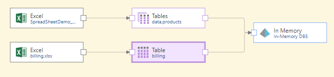 The second method is to drag the Tables node onto the canvas and connect it to the data source node; all tables in the source will be added to the Tables node:
