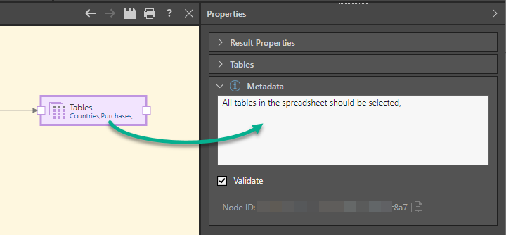 Note: Unlike most other nodes, the Tables Node does not support previewing.